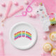 Class of 2024 rainbow colors custom rainbow curved text typography modern fun graduation Party paper plates.