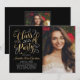 Stylish two-sided graduation announcement card and party invitation features a portrait of the graduate with adjacent elegant faux gold foil design in script with pretty scroll accents. Front of the card also includes custom gold and white coloured text that can be personalised for the event. The back of the card announces the graduation with a second photo and custom text for the graduate's name, class year, and school. The black background colour can be modified. Photo tip: crop your second photo to a square format before uploading to the site.