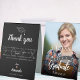 Class of 2025 Black Photo Graduation Thank You Table Tent Sign . The design has a thank you message on a black background and a thank you message written in a pretty font with the grad's name . The back has space to add a photo of your senior grad's photo . Show your gratitude and give thanks with this unique party table tent sign with a customised thank you message saying how grateful you are for all the support . Customise it by changing the name and photo of the graduate. For any further customisation , feel free to contact me at mypaperlove2021@gmail.com
