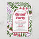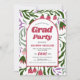 Class of 2025 bohemian arch and colourful retro folklore flowers Graduation Invitation. This Class of 2025 graduation celebration invitation features a boho arch and colourful retro folklore flowers, with customisable text for a personal touch. The invitation background has vibrant retro folklore flowers in shades of magenta and green, adding a festive touch to the design. The text 'Grad Party' is boldly displayed on the invitation. The back of the invitation includes space for a photo of the graduate within the boho arch, creating a meaningful keepsake.