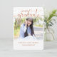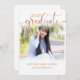 It's best to choose a vertical photo with plenty of room above the grad's head and some room below. A simplistic graduation announcement, ceremony or party invite, with the grad's photo, name and school on the card front. The look of bronze leaf has been created digital in a trendy script font for the class of 2025.