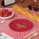 This red personalised paper plate is perfect for any graduation party. The gold and white text reads: Class of 2025 Grad. A black mortarboard sits on top of the zero in the year.