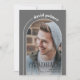 Join us in commemorating the accomplishments of the Class of 2025 with our unique graduation photo invitation. This sophisticated design features an arch, embellished with the graduate's photo, representing their path to success. On the left side, a gracefully curved line ascends and curves towards the right, showcasing the graduate's name in an bold font. Against a refined grey backdrop, this invitation exudes an air of sophistication and achievement. Flip it over, and you'll discover another cherished photo and all the essential information for the celebratory gathering, guaranteeing a memorable and joyful event for everyone involved.