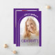 Class of 2025 GRADUATE arch purple photo Announcement. Designed with elegance, this announcement highlights the word 'GRADUATE' in a sophisticated font, directing attention to the main focus of the event. The centerpiece showcases a captivating photo of the graduate in an arch-shaped layout, while a sleek curve on the left side gracefully leads to the right, prominently displaying the graduate's name against a vibrant purple backdrop. Flip it over, and you will discover another photo and extra details, creating a cherished keepsake to commemorate this significant milestone.