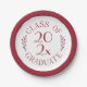 Throw an elegant graduation party with classic paper plates featuring a chic burgundy on white typography emblem which reads: CLASS OF [YEAR] GRADUATE with the words curving around the year in the middle with curved botanical leaves along each side of the circular design inside a maroon ring border. Customise the year in the sidebar.