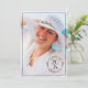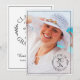 Send out modern graduation announcements featuring your grad's photo on the front with a chic circular black typography emblem which reads: CLASS OF [YEAR] GRADUATE in the lower right corner. A fine black rectangle creates a border near the edge. On the back, the emblem and thin black rectangle repeat with the graduate's name in a black script font and their school in a sleek serif font below the symbol on a white background. Add your photo and customise the year, name, and school in the sidebar. Personalise it for any type of graduate: high school, college, graduate school, law school, medical school, or trade school.