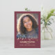 This elegant and festive 4.5" x 6.25" Photo Graduation Party Invitation and Announcement features the words "2025 Grad" in a modern, gold (simulated foil) font. There is a custom photo area for your picture of the graduate. The background is maroon, but can be changed to any colour of your choice (black, main school colour, etc.). The celebration details are on the back with matching "Let's Celebrate" gold text. Party details can be easily customised for your special event. A beautiful and simple way to invite guests to celebrate a graduation.