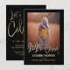 This elegant and festive 4.5" x 6.25" Photo Graduation Party Invitation and Announcement features the words "2025 Grad" in a modern, gold (simulated foil) font. There is a custom photo area for your picture of the graduate. The background is black, but can be changed to any colour of your choice (black, main school colour, etc.). The celebration details are on the back with matching "Let's Celebrate" gold text. Party details can be easily customised for your special event. A beautiful and simple way to invite guests to celebrate a graduation.