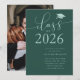 Elegant and simple graduation party invitation template for high school or college graduates! The typography text against the green background says "Class of 2025" in modern script font. Customise this product by adding the graduate's name, school, and party information.
