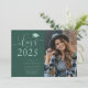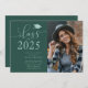 Elegant and simple graduation party invitation template for high school or college graduates! The typography text against the green background says "Class of 2025" in modern script font. You can also add a picture. Customise this product by adding the graduate's name, school, and party information.