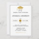 Invite to a celebration of Graduate. All the details are on the front -black and gold text on a white background - all with a narrow frame,