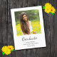 Class of 2025 Graduation announcement postcard, with a simple photo and an elegant script typography design. With grey customisable lettering, you can add your name and date. You also change the photo with your own image. Great for congratulating that special special graduate.