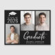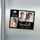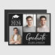 Modern Class of 2025 black graduation magnetic announcement card featuring 3 photos and "Graduate" in a contemporary bold white script. Add the grad's name, class year and high school or college in simple white typography.