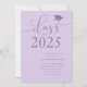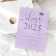Elegant and simple graduation party invitation template for high school or college graduates! The typography text against the purple background says "Class of 2025" in modern script font. Customise this product by adding the graduate's name, school, and party information.