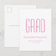 Graduation Class of 2025 Grad announcement postcard with a simple design. With pink customisable lettering, you can add your own text. A cute way to celebrate that special graduate.