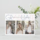 Class of 2026 Graduate dusty blue and blush pink stripes graduation modern, simple and minimal party photo collage with three photos invitation. It features the text "Graduate" in a dusty blue and blush pink and three photos. The backside features a photo and a diagonal striped pattern in the same colours.