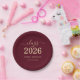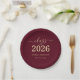 Stylish elegant custom graduation party supply! Celebrate the graduate's accomplishment in style with this trendy graduation paper plate. Design features "Class of 2026" in elegant gold script typography on a clean burgundy background. Personalize this product by adding the name and school name. Easy to customize. Matching graduation party supplies available. Congratulations!