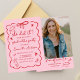 This customisable grad announcement allows you to personalise the name, school, graduation year, and event details. The black-and-white doodle aesthetic creates a timeless look that works beautifully for formal celebrations, graduation parties, or mailed keepsake announcements for friends and family.