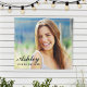 Display a personalised photo of your high school or college graduate in style with this tapestry wall hanging / graduation party sign. Simple and minimal design features a photo of the grad, accented with a modern and elegant script text overlay of the grad's name and class year. Black text colour and font styles can be modified.