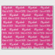 The wrapping paper is hot pink. It has a text pattern for the graduate's name and Class of 2026. The name (Shown: Elizabeth) appears in an elegant white script. The other text is also white. All of the text can be edited.