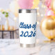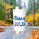 Tumbler with Class of 2026 in 3D sea blue text. Mug available in several styles and colors.