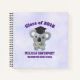 Square spiral notebook which says class of 20xx, customise with the year of graduation, a personal name and school. Designed with a light purple background. Illustrated with a cute koala bear with a black graduation cap eating some eucalyptus leaves.