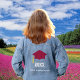 Burgundy graduation cap and graduation year number Denim Jacket. Text can be personalised.