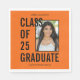 Class Of 25 Graduate Orange & Black Photo Napkin