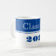 Grad class of coffee mug is shown in a royal blue and white colours design.