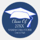 Decorate your graduation invitations and graduation announcements with these navy blue and white envelope seals. They feature a white graduation cap at the top. Then the phrase Class of 2017 is written below. Along with the graduate's name is chic capital letters and their high school below. You can easily personalise the text, change the colour and the size. You can even change the background colours to match your school colours or graduation party decor.