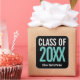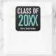 Modern and Bold graduation Stickers in white and teal colour over a black background.