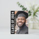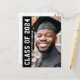 Modern graduation photo thank you postcard featuring your photo and the text "class of" and your year in a modern college sports style font. Custom message and additional photo on the back, white text on black background. Colours and fonts are customisable in the design tool.