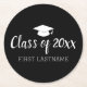 Class of Year and Name - Black Can Change Colour Round Paper Coaster