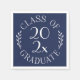 Throw an elegant graduation party with paper napkins featuring a chic white on navy blue typography emblem which reads: CLASS OF [YEAR] GRADUATE with the words curving around the year in the middle with curved botanical leaves along each side of the circular design. Customise the year in the sidebar.