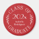 Classic white on red typography emblem reads: CLASS OF [YEAR] GRADUATE with the words curving around the year and your graduate's name or school in the middle with curved botanical leaves along each side of the circular design. Customise the year and name in the sidebar. Makes a fun graduation gift.