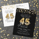 Invite school or college university alumni to your 45 Year Class Reunion with these modern and elegant postcard invitations featuring faux metallic gold balloon number typography, gold streamers and confetti and white lights in your choice of background colour to coordinate with your school colours or party theme colour (shown in black). ASSISTANCE: For help with design modification or personalisation, other balloon number for another year, colour change or transferring the design to another product or you would like coordinating items, contact the designer BEFORE ORDERING via the Zazzle Chat MESSAGE tab below or email makeitaboutyoustore@gmail.com.