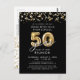 Class Reunion 50 Year Black Gold Balloons Invite Postcard