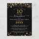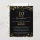 Modern and elegant class reunion postcard invitation for any year reunion (shown for a 10 Year) featuring gold stars and lights, elegant handwritten script typography and a custom colour background (shown in black) that you can change to your school colour or party theme colour. All text is editable to make your own. ASSISTANCE: For help with design modification or personalisation, colour change or transferring the design to another product or you would like coordinating items, contact the designer BEFORE ORDERING via the Zazzle Chat MESSAGE tab below or email makeitaboutyoustore@gmail.com.