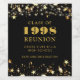 Personalised and custom colour commemorative high school or college class reunion wine or beverage labels that can be used for any graduating class (the year is editable) with your class year, school name and date and/or location. The design features gold stars and string lights against an editable black background colour you can easily change to your school colour. Makes great class reunion table centerpieces, commemorative keepsakes, favours, prizes or give-aways. CHANGES: The background and text colours can be changed by clicking the EDIT USING DESIGN TOOL in the PERSONALIZE section. ASSISTANCE: For help with design modification or personalisation, colour change, resizing, transferring the design to another product or you would like coordinating items, contact the designer BEFORE ORDERING via the Zazzle Chat MESSAGE tab below or email makeitaboutyoustore@gmail.com.