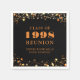 Personalised black and orange colour high school or college class reunion napkins for any graduating class (the year is editable) with your class year and school name and accented with gold and orange stars and string lights. ASSISTANCE: For help with design modification or personalisation, colour change, resizing, transferring the design to another product or you would like coordinating items, contact the designer BEFORE ORDERING via the Zazzle Chat MESSAGE tab below or email makeitaboutyoustore@gmail.com.