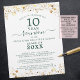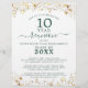 Modern and elegant class reunion invitation flyer printed on lightweight thin paper (not cardstock) for any year reunion (shown for a 10 Year) featuring gold stars and lights and elegant calligraphy script typography in green. All text is editable, including font styles and colours, to make your own. OPTIONS: The sample is shown on an 8.5x11" flyer; other sizes and paper type are available on the ordering page. ASSISTANCE: For help with design modification or personalisation, colour change, resizing, transferring the design to another product or you would like coordinating items, contact the designer BEFORE ORDERING via the Zazzle Chat MESSAGE tab below or email makeitaboutyoustore@gmail.com.
