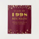 High school or college class reunion banner sign or photo op backdrop for any graduating class (the year is editable) and/or photo booth backdrop featuring your class year, school name and gold stars and string lights against an editable burgundy or maroon background colour you can easily change to your school colour. General enough to reuse for all your reunions. CHANGES: The background and text colours can be changed in EDIT. TAPESTRY OPTIONS: The sample is shown in the 50x60" size--other sizes are available on the ordering page. ASSISTANCE: For help with design modification or personalisation, colour change, resizing, transferring the design to another product or you would like coordinating items, contact the designer BEFORE ORDERING via the Zazzle Chat MESSAGE tab below or email makeitaboutyoustore@gmail.com.