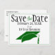 Class Reunion Save The Date Green Grad Cap QR Code Postcard