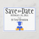 Send off this minimalist blue and orange "Save The Date" for your class reunion on this template postcard announcement. Personalise the text in the template fields for the front and back or click customise to select a typeface style, size, and colour you prefer.