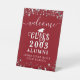 Welcome classmates in style with this elegant class reunion table sign, designed for alumni celebrations, milestone reunions, and school gatherings. Featuring an editable red background with decorative silver star accents and graceful script typography, this design offers editable class year text along with customizable background and text colors to coordinate with school colors or party theme palettes. Perfect for registration tables, welcome displays, memory tables, or event décor, this compact tabletop sign adds a polished and personal touch to any class reunion celebration while remaining easy to update for any graduating year. ASSISTANCE: For design assistance, contact the designer BEFORE ORDERING via the Zazzle Chat MESSAGE tab below or email makeitaboutyoustore@gmail.com.