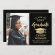 Class Year Black and Gold Modern Graduation Photo Invitation