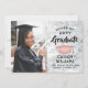 Announce a high school or college graduation and invite family and friends to celebrate with custom photo faux marble party invitations. The picture and wording are simple to personalise and the colours are easy to change with the Zazzle design tool. This template is set up as a combination announcement card and party invitation that can be customised with any details of your choice, such as parents' names, special honours, degree title, favourite inspirational quote, graduate's future plans or new address. The pink, white and black design features a faux marble background, a faux rose gold foil mortar board cap, elegant modern calligraphy, classic vintage typography and one favourite photo, such as a senior picture or an image from the commencement ceremony. Please note that rose gold is printed pink colour, not metallic foil. This graduation card is a stylish way to announce a special day celebration. Congratulations to the graduate!
