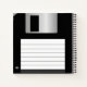 Design on front and back. Reminisce about the good old days with this nearly lifesize floppy disc notebook.