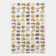 Design features an original marker illustration of a row of classic American "greasy spoon" diner foods, including eggs, hash browns, onion rings, pie, coffee, ice cream, burger, waffles, club sandwich, grilled cheese, pancakes, and more. Ideal for your favourite foodie or fan of classic rail car diners.