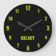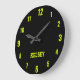 Classic and Elegant Black and Neon Yellow Name Large Clock